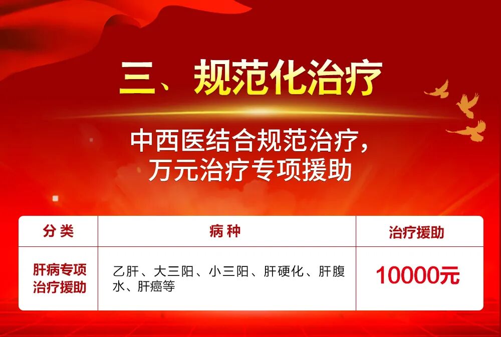 根据患者不同阶段的病情及严重程度,采用中西医结合精准治疗的方式,充分发挥西医抗病毒、中医抗纤及辨证施治的优势,其疗效明显优于单纯中医或单纯西医的治疗。活动期间推出相关治疗援助,到院患者可申请由我院发起,联合北京佑安联盟、中华中医药学会共同发布的《医疗援助证》,患者经相关申请后即可得到最高万元的全年专项治疗援助。