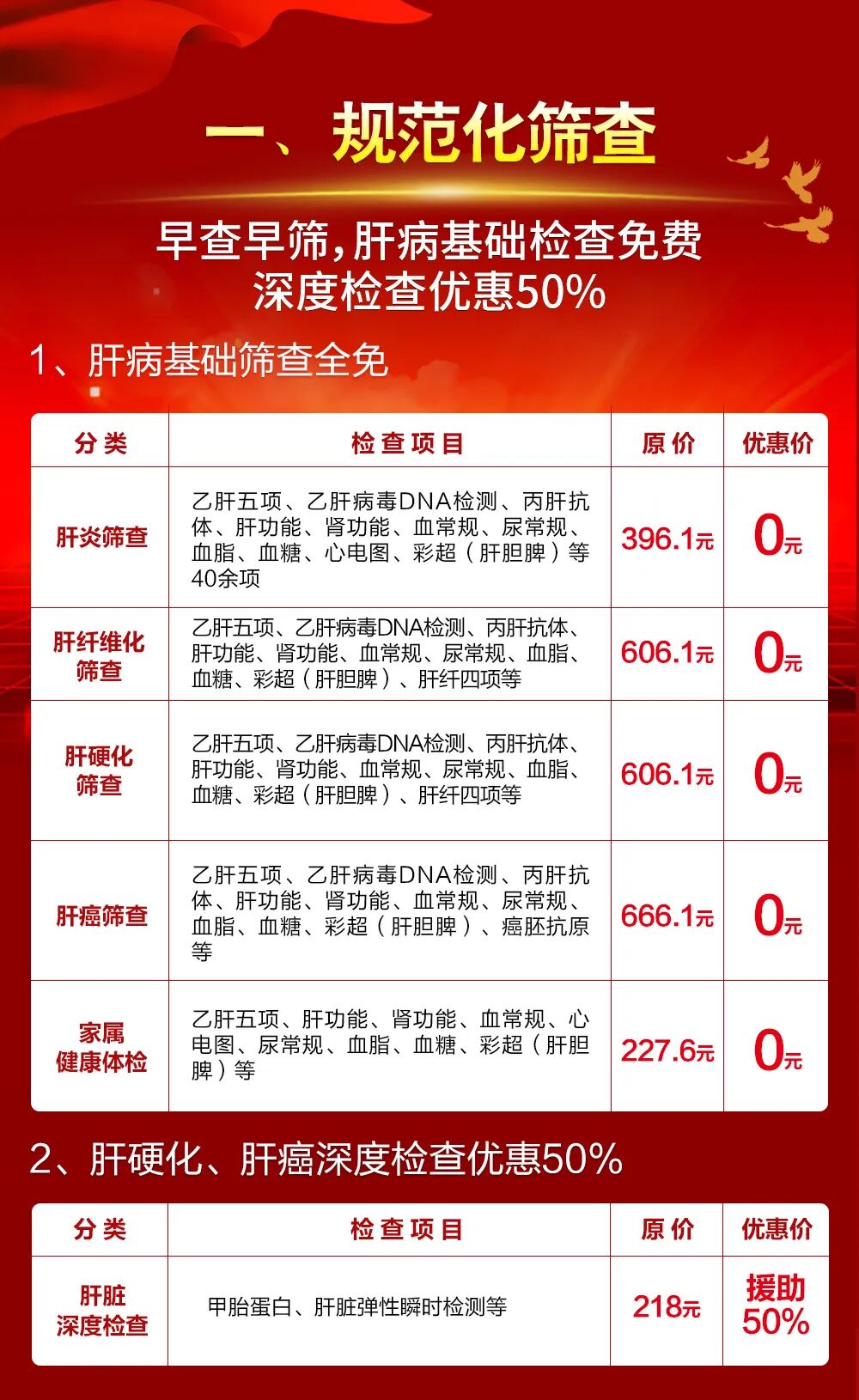 早查早筛,肝病基础检查免费,深度检查优惠50%