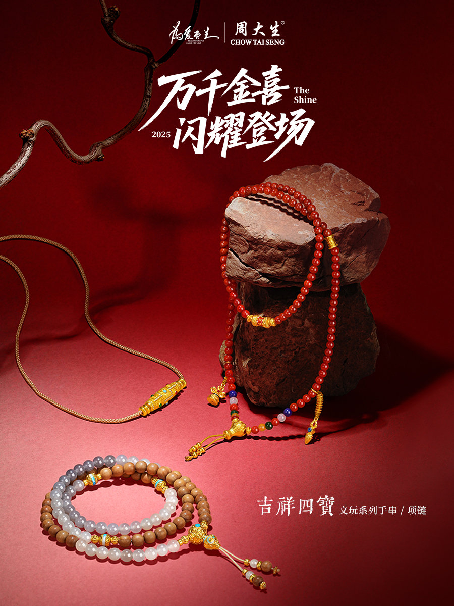 年轻人会通过佩戴有文化内涵的黄金文玩,来表达自己的审美品位和文化自信。周大生则深度挖掘文化元素,汲取平安泰山、吉祥布达拉、如意普陀、福韵国宝四大ip灵感,融合三大宫廷传世工艺——仿古绢画工艺、宫廷炸珠工艺和手工缂丝工艺,并在黄金材质上巧妙融入玉石、檀木、南红、蜜蜡等多种文玩材质,突破传统黄金单一材质的局限。