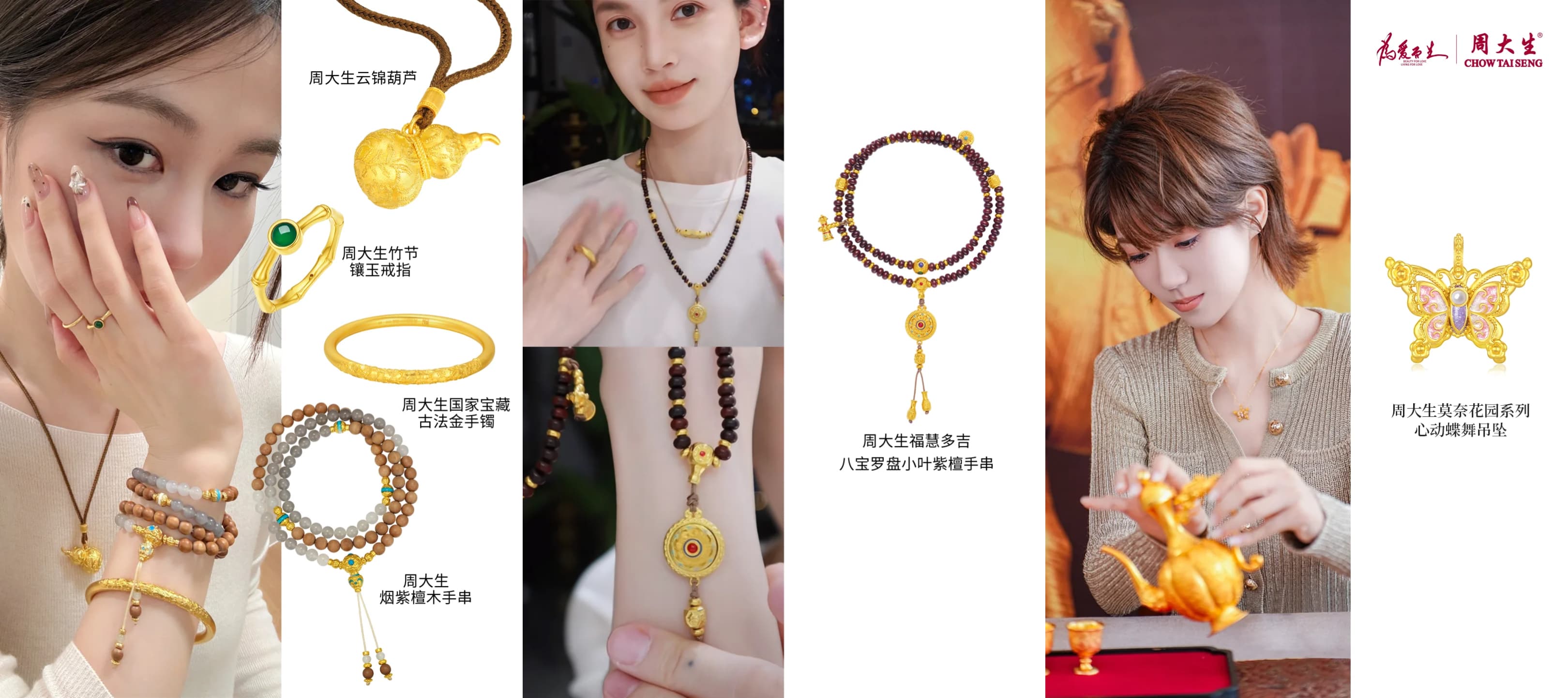 然而前段时间我偶然点进周大生跟无忧传媒合作的特别直播间,直接被硬控了——颜值活力在线的男团爱豆们戴着周大生的黄金产品,边唱跳边安利,弹幕里全是"哥哥同款我来了!""这个手串也太好看了吧!""买它买它!"